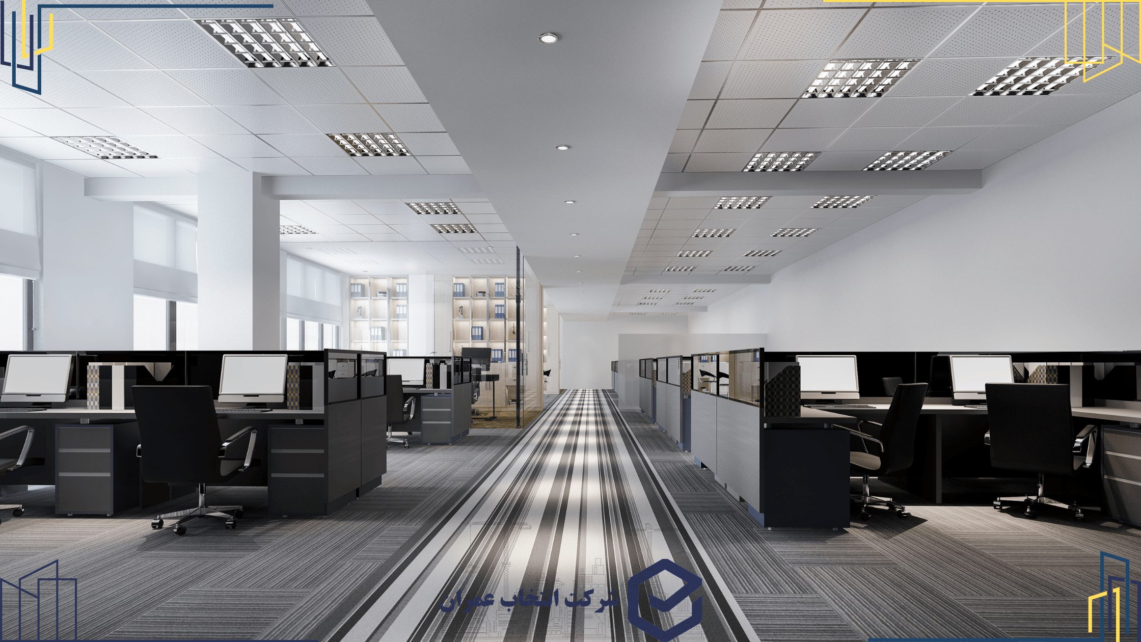 نکته: رنگآمیزی و نورپردازی حرفهای تأثیر زیادی در زیبایی و حس فضای کاری دارد. استفاده از رنگهای روشن باعث افزایش انرژی و تمرکز کارکنان میشود.